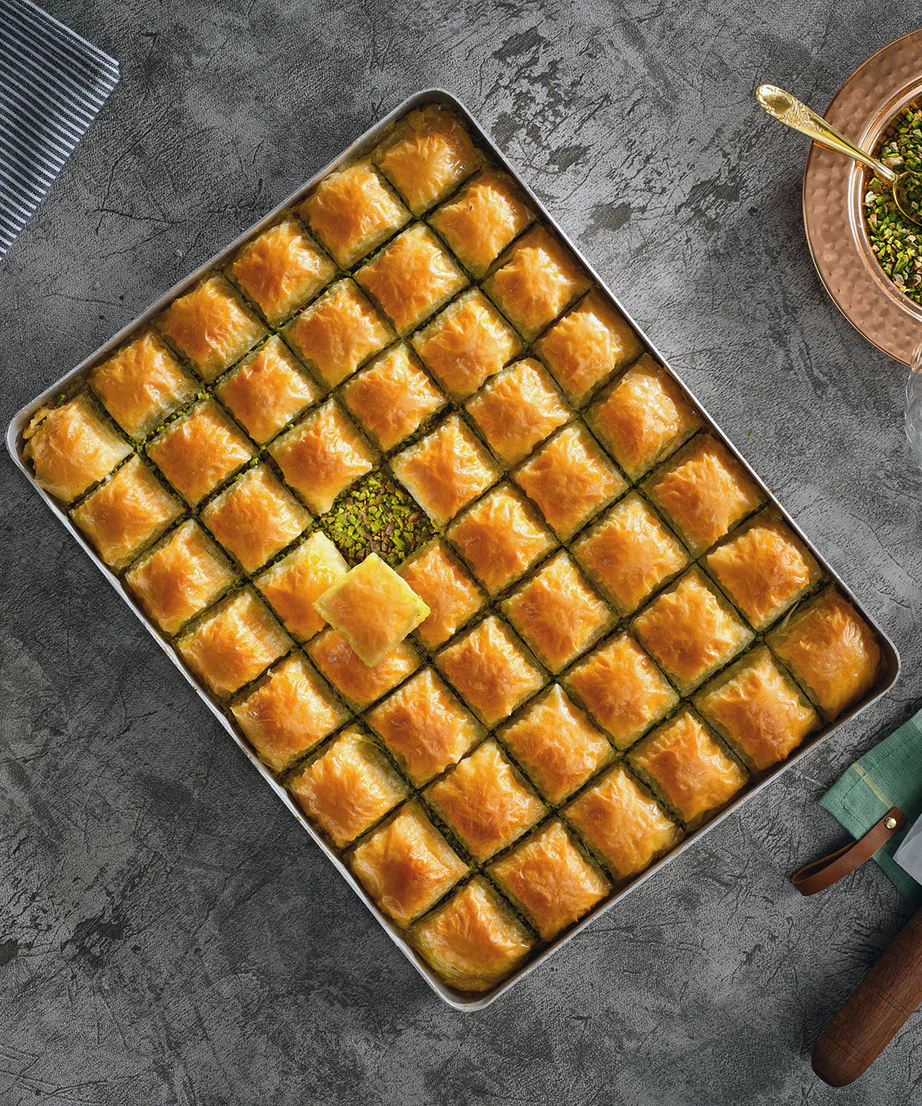 Ağam’s Pistachio Baklava leaves a sweet mark on the palate and offers a stomach-friendly flavor feast with plenty of Antep pistachios harvested at the right time from the right region, pure clarified butter used in production, perfectly hand-rolled layers of filo, and syrup made from beet sugar with no glucose syrup. With its golden appearance, Ağam Pistachio Baklava invites you to the sweet side of life.